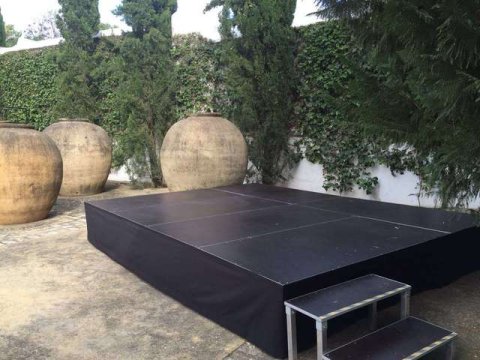 Es muy probable que durante tu próximo evento en la Costa del Sol tengais previsto un discurso, un show flamenco, una banda o cualquier actuación que requiera el uso de una tarima para montar un escenario profesional. Pues ponemos a tu disposición unas tarimas de gran marca con patas extensibles de entre 40cm y 60cm de altura.