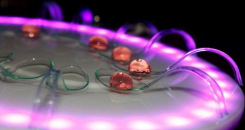 - Perlas moleculares y sus realmente bonitos (iluminados) platos para servirlas