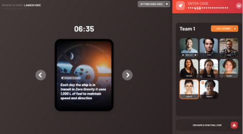 Los equipos trabajan sobre un problema complejo para el cual la información se distribuye entre los miembros de cada equipo. Deberán usar sus habilidades de teletrabajo para encontrar el código de lanzamiento de la misión.